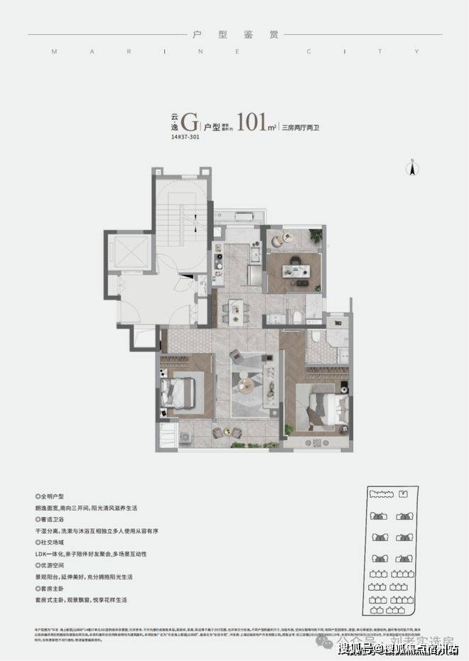高层建面约101㎡3房2厅2卫