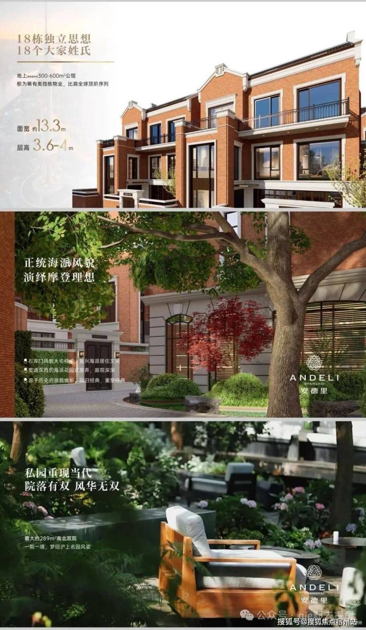 18栋独立思想18个大家姓氏地上建筑面积约300-600㎡公馆,面宽约13.3m ,层高3.6-4m。