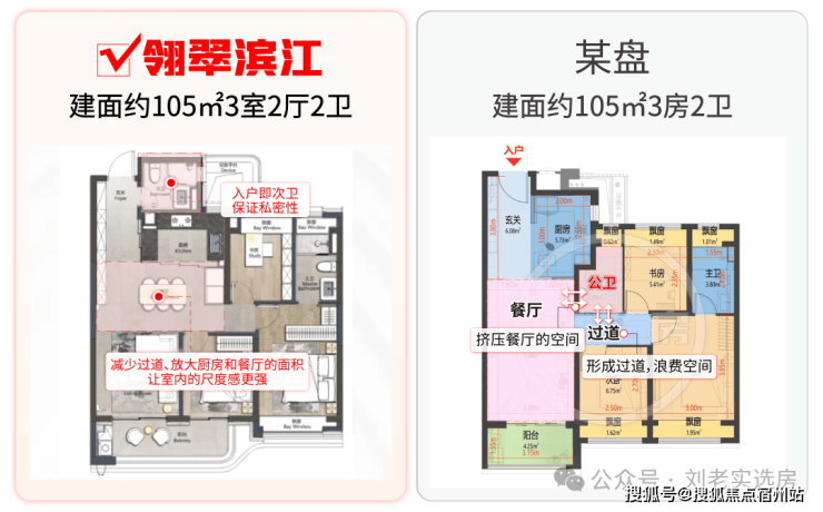 这样的站位带给翎翠滨江的优势是什么呢,我们来看一下对比: