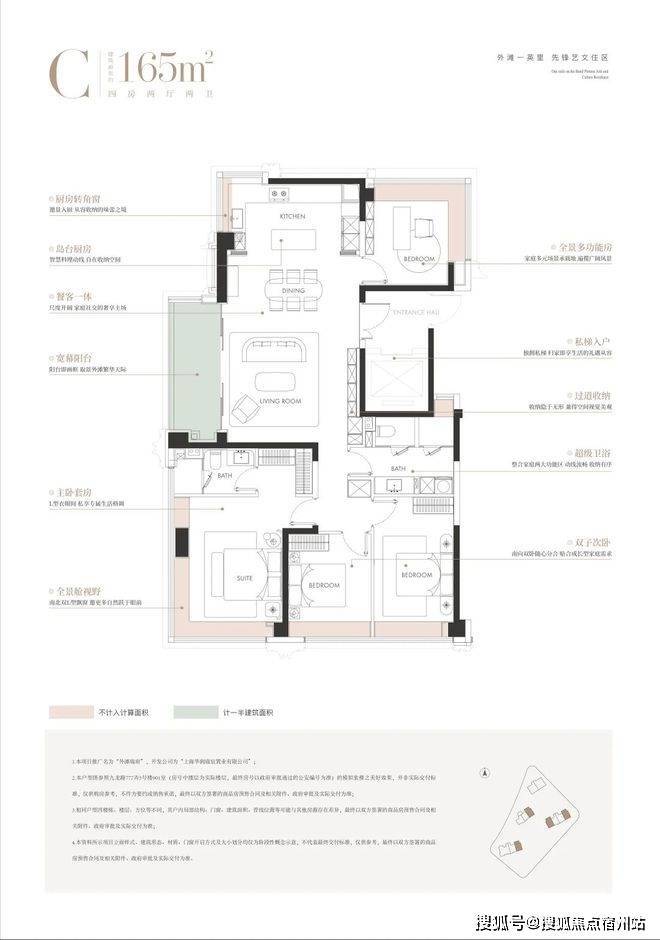 165平方米的四房两厅三卫户型是项目的“明星户型”。7.2米的南向横厅设计,客餐一体化空间面积约30平方米,可轻松容纳家庭聚餐或商务宴请。双主卧套房设计,均配备独立卫浴与观景飘窗,让老人与年轻人都能拥有私密的居住空间。值得一提的是,该户型的三个卧室面宽均超过3.3米,真正实现了“居住平权”,避免了传统户型中“主次卧差距过大”的问题。总价约2200 - 2600万,✅✅上海华润外滩瑞府售楼处电话☎:400-833-6309(预约看房热线)