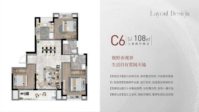 建面约108㎡3房2厅2卫,做到了三开间朝南+双阳台设计+主卧套房设计+南北通透,该户型得房率非常高。大名城映雨江南售楼处电话:400-856-9058