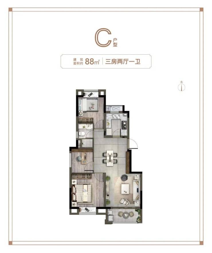 预算相对有限的,可以选这个建面约88㎡3房:大名城映湖售楼处电话:400-8824-258