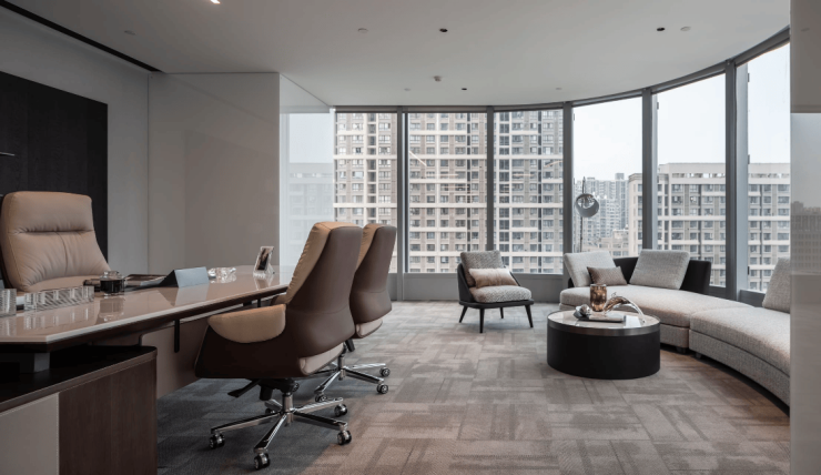 交付标准:穿孔铝板吊顶,有效吸音降噪;墙面乳胶漆;电动窗帘;地面架空地台130mm;(另可提供标准装修、定制装修);