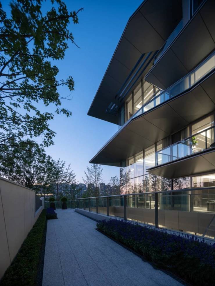 项目整体规划因地制宜,借助长安公园地块天然优势将建筑群落斜竖排布,依湖而建,营造四层低密大境