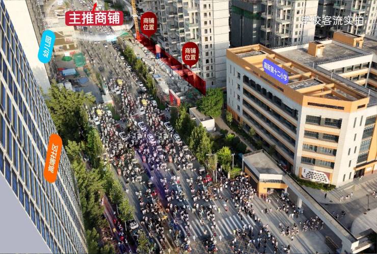 商铺左侧即名校高新第十二小学(延续高新二小名师资源),而商铺所处位置正是每日两拨学生家长唯一且必经之路,可以说是放学铃一响、客流即涌入!