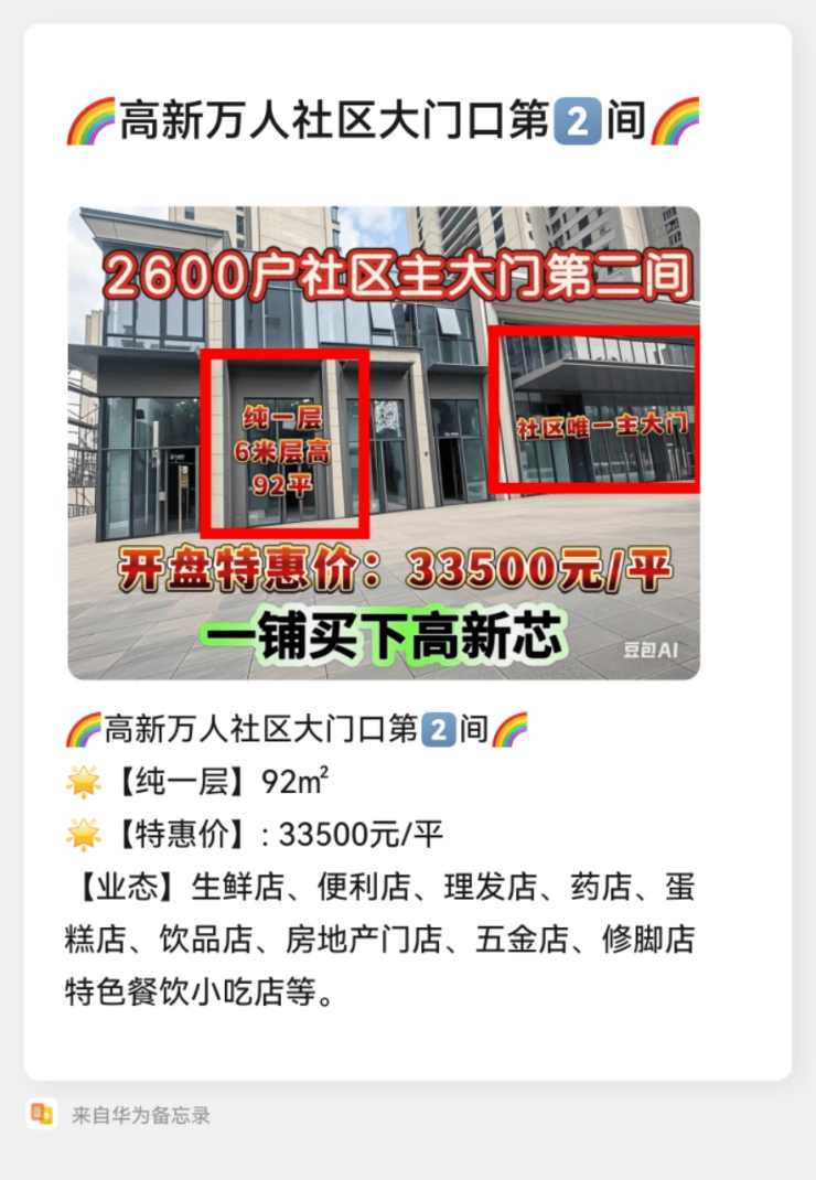高新社区大门口第一间商铺在售