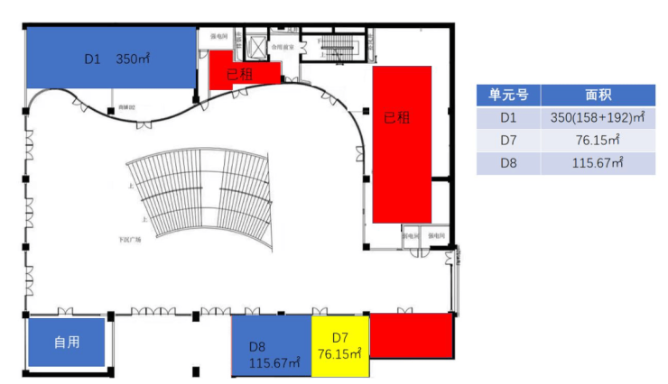 面积:350m² 可分D1户:158/