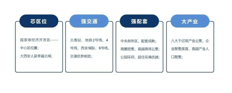 高铁:西安北客站,亚洲最大高铁站,西北规模最大、最重要的铁路枢纽,1小时省内生活圈,3小时抵达周边城市群,6小时长三角、京津冀,9小时珠三角,全国各大中城市快速往来畅行无忧。高速:临近三环、绕城高速、机场高速(15分钟即达机场)、包茂高速,自驾出行急速抵达周边城市。