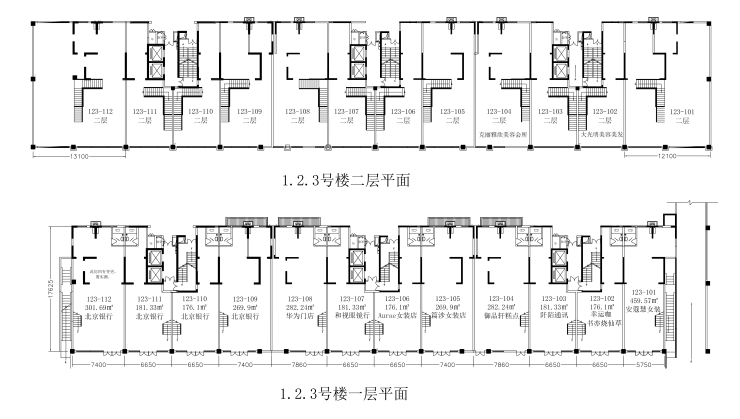 商铺层高:一层:层高4.5米;二层:层高4米