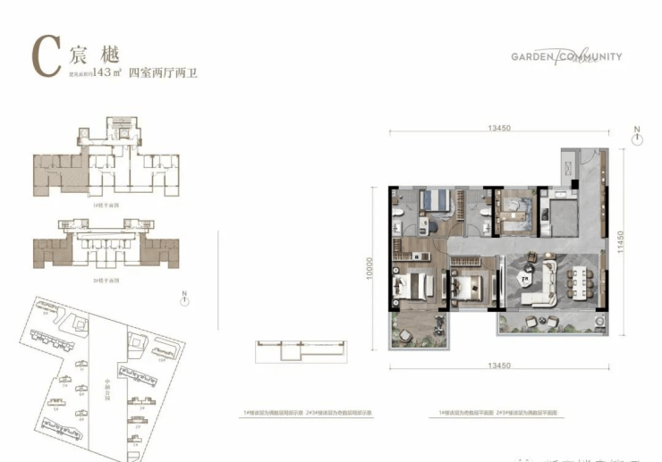 楼盘户型建面:115-143㎡