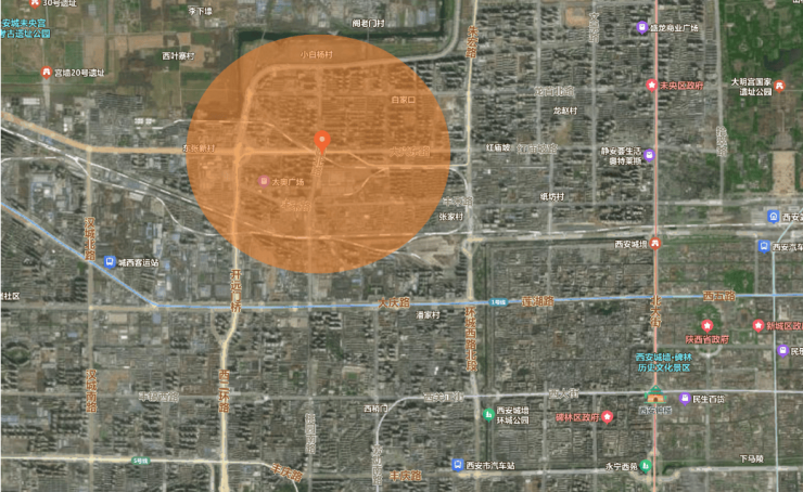 项目周边配套:项目东侧距离莲湖公园约4千米,东北侧有天朗大兴郡蔚蓝春城、世纪锦绣小区,北侧距离汉城湖水利风景区约2.1千米,西北侧有天朗美术馆、融创天朗御园、蔚蓝青城,西侧距离汉长安城未央宫国家考古遗址公园约10千米,西南侧有大兴九臻西区、鑫苑大都汇住宅1期、鑫苑体育运动公园、万达广场,南侧距离西安理工大学莲湖校区约1.6千米,东南侧有光化里、大兴九臻东区、鑫苑大都汇,周边配套及基础设施齐全,发展成熟,人口密度大;3km辐射常驻人口超35万,且高质素人群基础较大