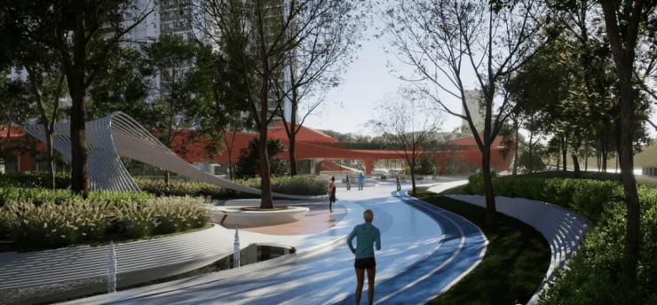 由金泰恒业代建的城市中央绿轴公园横穿社区,艺术感高线廊桥、地面公园景观搭配地下情景式综合商业,三维视野贯通,打造前所未有的立体化公园居境,让丰富公园景观丰盈美好日常,让人居生活真正的融于公园里。