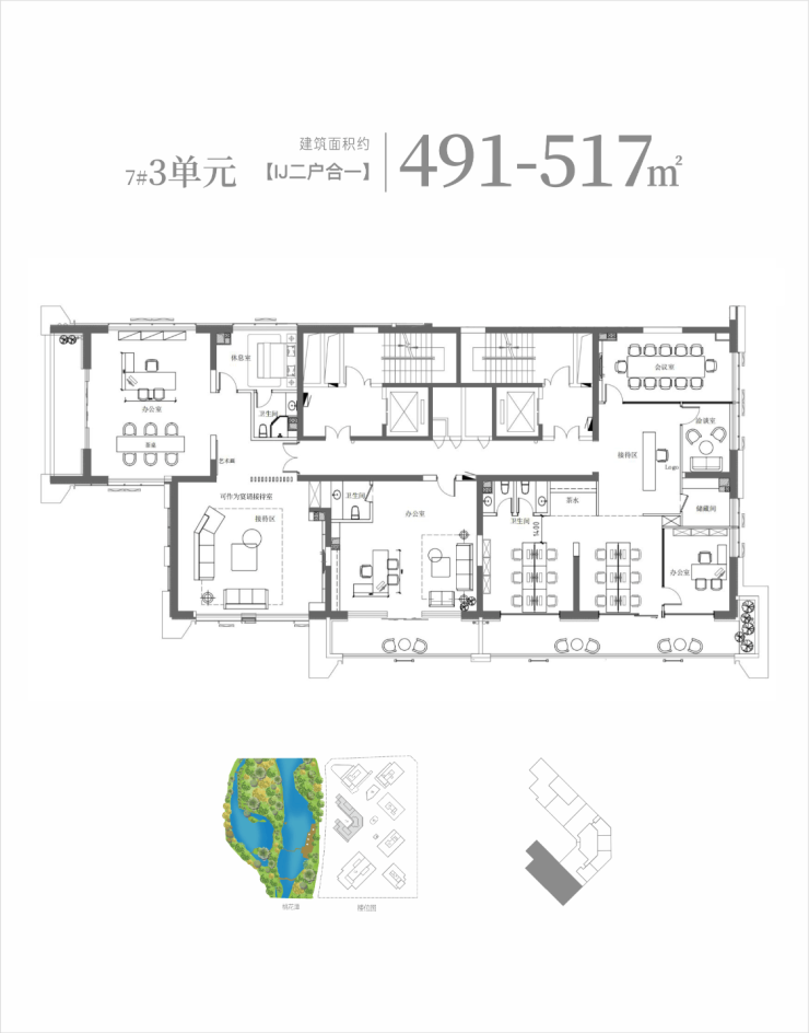 在售楼栋状况:3#、4#、7#,单户建面约40-440㎡ 可自由组合最高至1300㎡