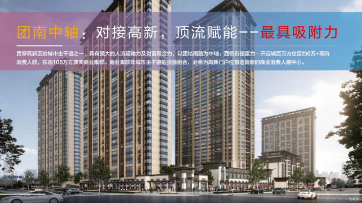 富力·开远城位于二环主城核心板块,毗邻高新一期,规划逾300万方城市综合体,涵盖205万方高端住宅,105万方全维商业,未来将成为板块核心商业中心,以超级规划虹吸高新等板块近百万人流消费,汇聚16万+稳定客源,打造国际都会城芯的生活核心圈