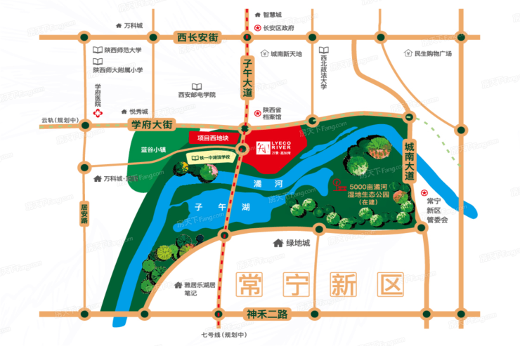 汇集长安区第六幼儿园、长安第三小学等优质教育配套,周边西北政法大学、西安邮电大学约16所高等院校林立,客群及收益率稳定;