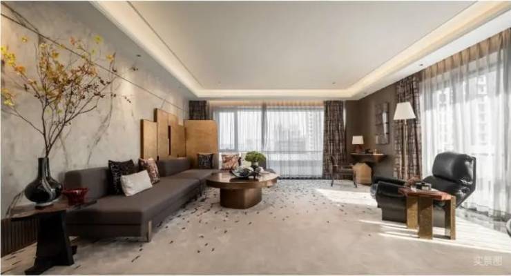 以独具符号的天幕落地窗,营造奢适观景视野无界聚场式宽境空间,纵横开阖贴合峯层家族式社交场景