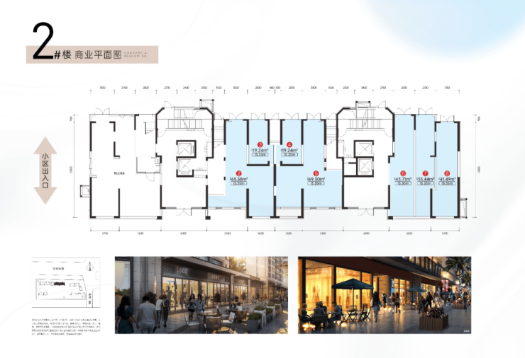 ⊙2栋—住区主入口黄金铺位,服务千名豪宅业主日常消费。