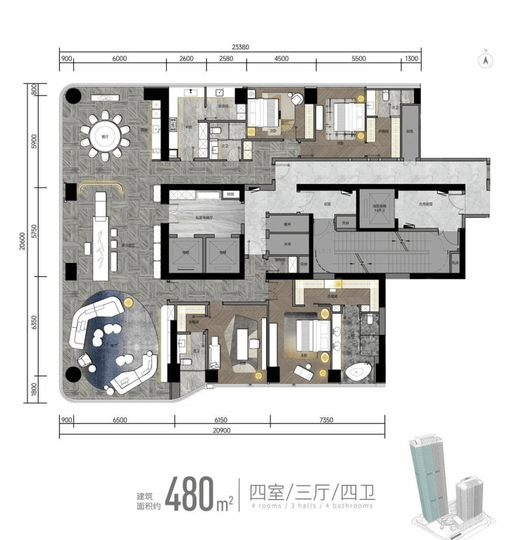 尊仪:约2000㎡酒店级入户大堂