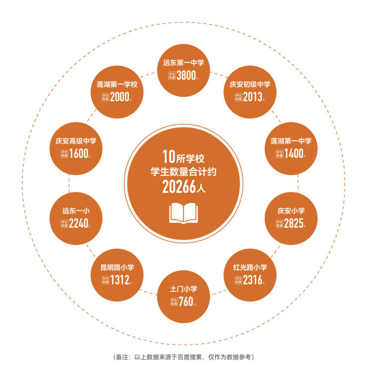 •资源密度罕见:项目旁边规划建设幼儿园+小学,约1公里范围辐射10余所中小学,在校学生数量约2万人左右。