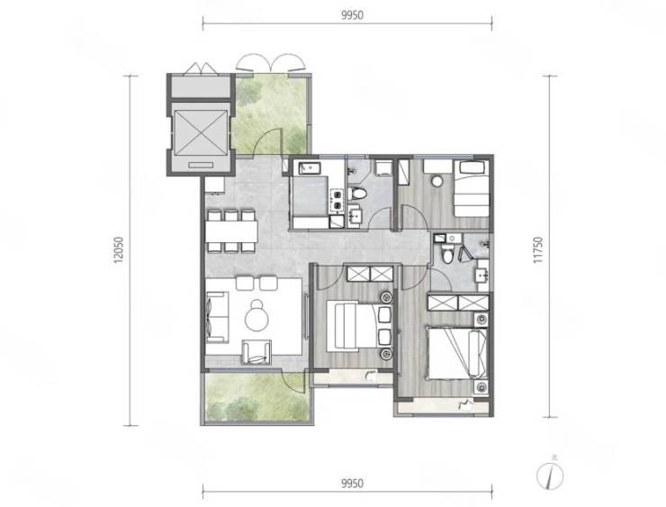 A2户型 3室2厅2卫 101m²