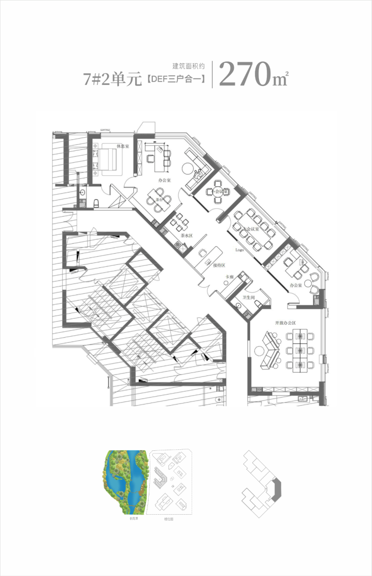 建面约196-440㎡河景公园商务平层,满足全周期功能使用场景,可办公,可投资,为使用者带来更多元的商务功能空间与稳定的长线价值收益。