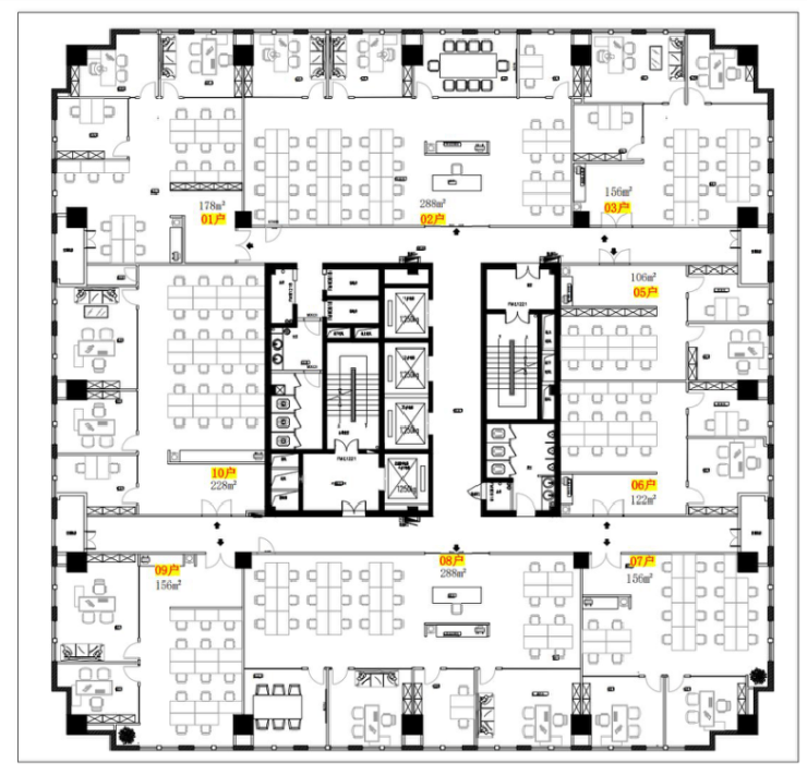 【面积】:整层约1800㎡