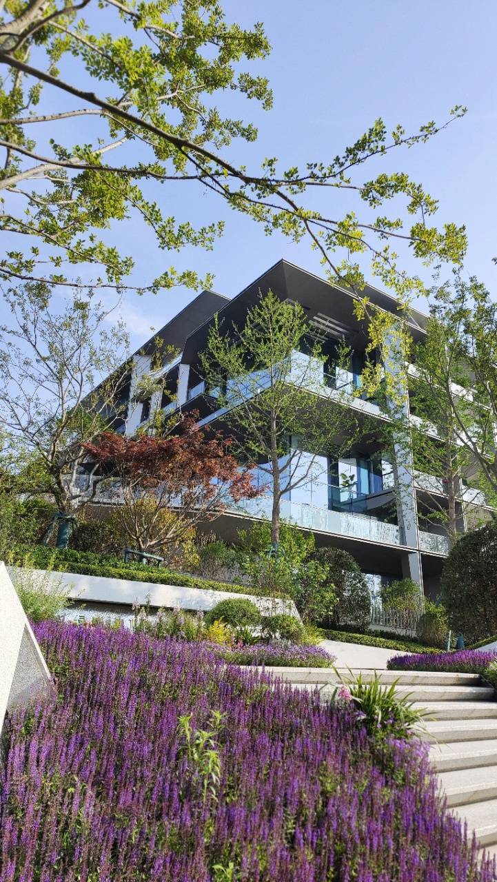 项目整体规划因地制宜,借助长安公园地块天然优势将建筑群落斜竖排布,依湖而建,营造四层低密大境