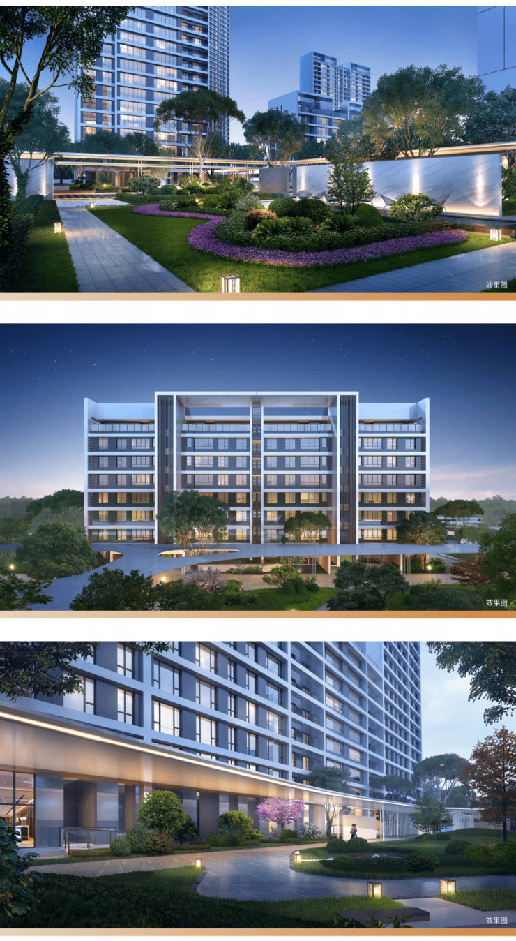 项目外立面以国际、精致的风格呈现简洁的造型和线条,塑造鲜明的建筑形象,以国际流行色调和非对称性的手法提炼符合当代审美的高贵、优雅以及与心灵的融合,让居住更具有建筑美,彰显都市感和现代感。