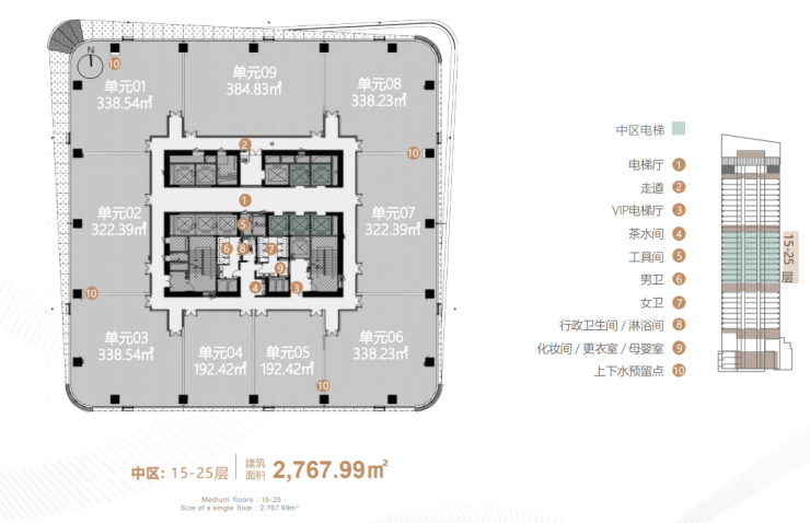 标准层面积:约2670-2884㎡,最小面积150㎡