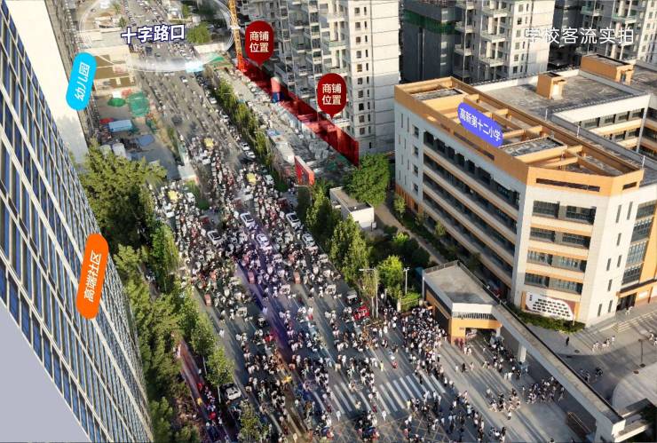 项目位于高新十二小正门左侧,高新十二小作为区域内顶配教学资源,继承了名校高新二小的名师资源,共配备48班,师生总数3000人,每日上下学两拨稳定师生家长消费群体,正对面还有一座在建的 24班幼儿园,项目的北侧、南侧分别被西安外事学院北区、南区、西区三大校区围绕,合计师生总数3w +,周边高新第三十三小学(48 班)、西安高新第一学校(46 班)、高新第二小学(10 班)相邻,绝对的教育资源集合区、高密客流汇集处!
