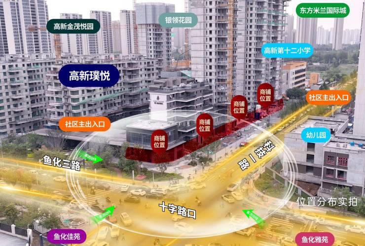 项目被鱼化雅苑(952 户)鱼化嘉苑(1648 户)鱼化尚苑(1627 户)鱼化鑫苑(2110 户)鱼化璟苑(1172 户)五大鱼化寨环建社区包围,人口密度高达 4w+,1km范围内,高科枫林檀阅里(389 户)、金辉高新云璟(1389 户)、高新金茂悦园(822 户)、天朗蓝湖树(4060 户)、风度天城(1086 户)、左岸春天(594 户)、日化南苑(354 户)东方米兰国际城(1970 户)银领花园(480 户)8 大社区环绕, 高密居住人群=蓬勃消费力!区域内商机无限!