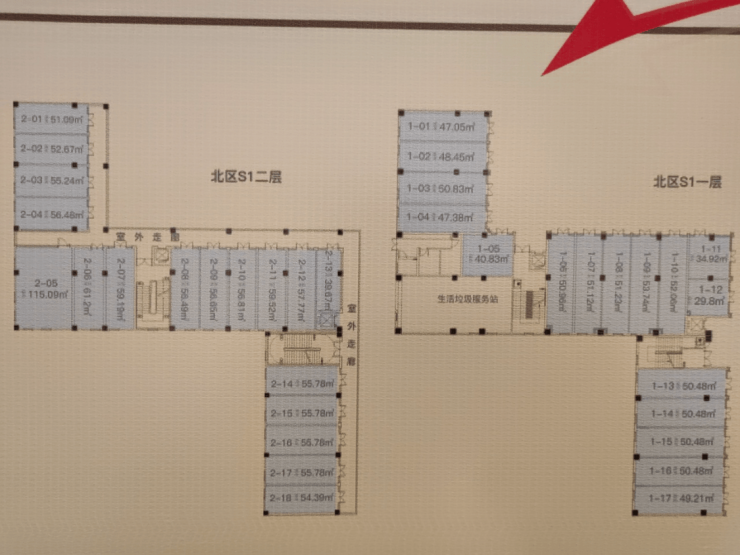 保利锦上北区鸟瞰图 北区占地约95.4亩,S1-S4,产品面积约29~136平方米,一楼层高:6米,均价:14000到24000,二楼层高4米,均价:7000左右。