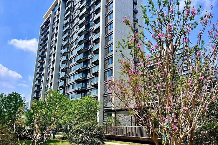 规模与指标:占地约 2.1 万㎡,建面约 6.5 万㎡;共 6 栋(3 栋 18 层小高层 + 3 栋 11 层洋房),总计374 户;容积率2.1(区域少见低密),绿化率 35%;车位比 1:1.4(529 个),人车分流;2024 年 3 月已整体交付,纯现房