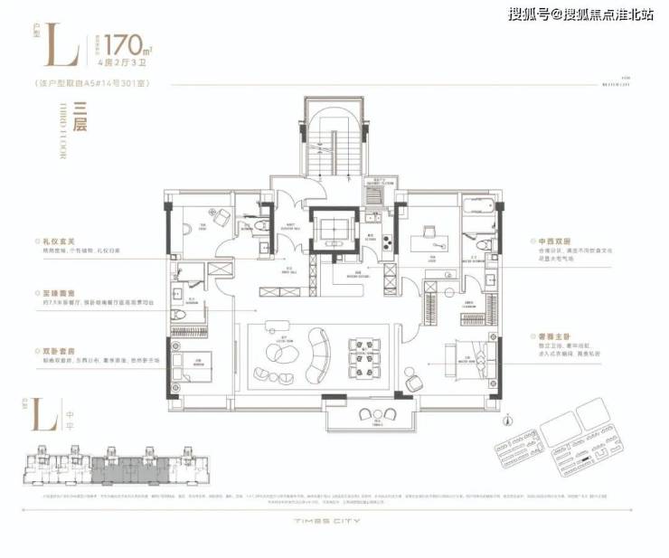 ◐中叠亮点:超大南向面宽,超级大横厅,“墅级”大平层视野。