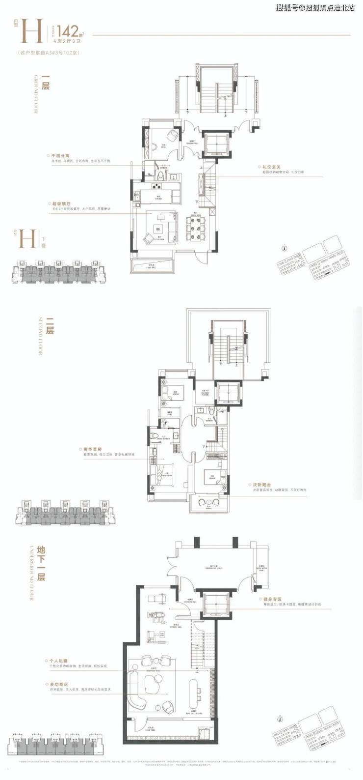 ◐下叠亮点:南北双入户,超大面宽采光井、多功能地下室。