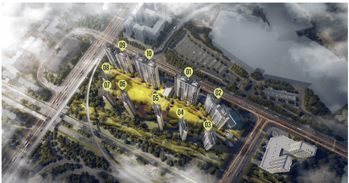 建筑规划:建筑类型为小高层、高层,容积率为 2.53,绿化率 30%,规划户数 1562 户。小区内无超高层,规划有 10 栋 15-33 层住宅楼,1 所幼儿园及部分社区商业。