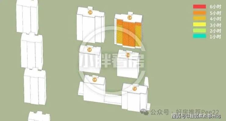 分析结果是这样:计算已考虑周边所有建筑的影响,结果表明南边住宅不会对本次开盘楼栋产生遮挡,楼栋仅受地块内部影响。(说明:本文日照数据基于公示规划图纸文件,使用专业制作工具完成,仅供参考)