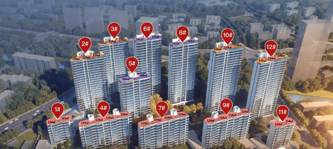 项目共有12幢,5幢洋房,1幢小高层,6幢高层