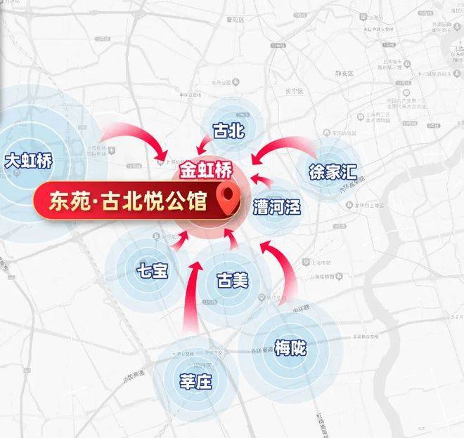但古北一期、二期的房地产开发早已饱和,新房也已经断供许久!于是,国际社区的建设便顺势拓展到了闵行金虹桥。