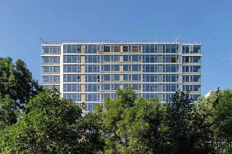 幕墙龙骨完成,门窗主框安装完成90%