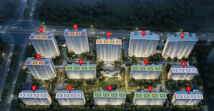 户型面积:主力户型为 89-123㎡,涵盖三房两厅一卫至四房两厅两卫,部分户型有可拓展空间,适合二胎家庭或三代同堂。