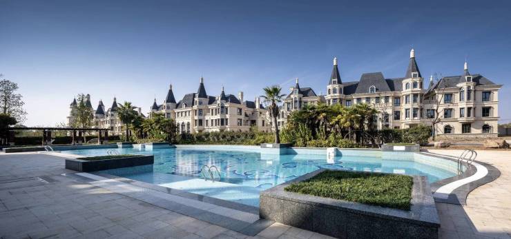 产品形态:纯联排别墅,分法式、美式、英伦等风格组团;地上 3 层 + 地下 1 层,户户带私家花园、露台、独立车库;全部现房毛坯