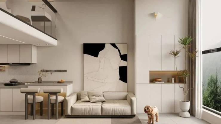 开阔的视野和优越的采光,奠定了这个家的宜居属性,熹微般的日光透过落地窗,与室内气韵缱绻相融,犹如静止的时光,干净而又从容,每一处的精心安置每1㎡都写满高级。