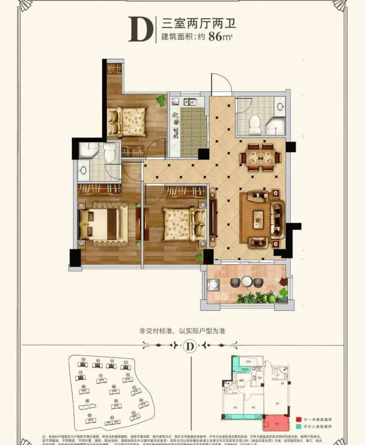 户型面积:84平、86平、91平、105平、115平、119平