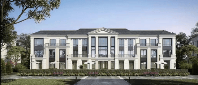 九龙仓在打造蔚蓝花园项目时,采用的是高级干挂石材+玻璃幕墙外立面的设计,品质感和时尚感兼备。讲究轴线对称的布局,更显气势恢宏,廊柱、斜坡面、老虎窗、孟莎式屋顶等法式风格元素,无处不流露着建筑的浪漫。