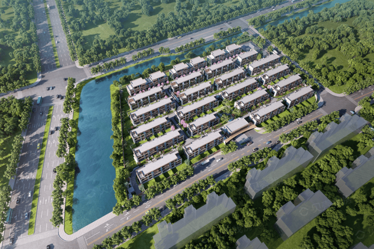 小区规模:占地面积 21995 平方米,总建筑面积约 4.7 万平方米,由 23 幢 3-5 联排别墅组成,总户数 95 户。