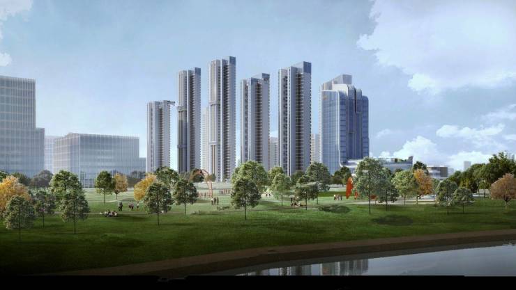 小区规划:小区拟建 10 栋 17-43 层住宅,含 1 层商业裙房和 1-2 层住宅配套用房,还建有 1 栋 2-15 层商业及酒店、1 栋 2 层商业、1 栋 3 层幼儿园等。内部规划有幼儿园、老年活动中心、儿童游乐区、健身设施等。
