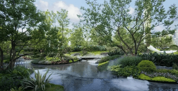 景观设计:采用“一环两轴四带”布局,拥有度假风戏水池、屋顶花园、全龄架空层等特色空间,营造轻奢度假氛围