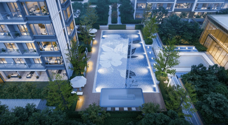 园林景观:以运动设计为主题,构建了 “一环八园” 的自然景观及功能设施,有约 700 米慢跑道串联休憩时光、魅力空间、羽动天地等九大场景,园林中央还有度假风景观水池。