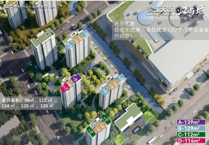 滨江天街|江与城,外揽千年甬江,内拥一线水系,由总建16万方的宁波第三座天街繁华领衔,臻造建筑面积约99-139㎡精奢美宅,上演当代都会潮流生活。